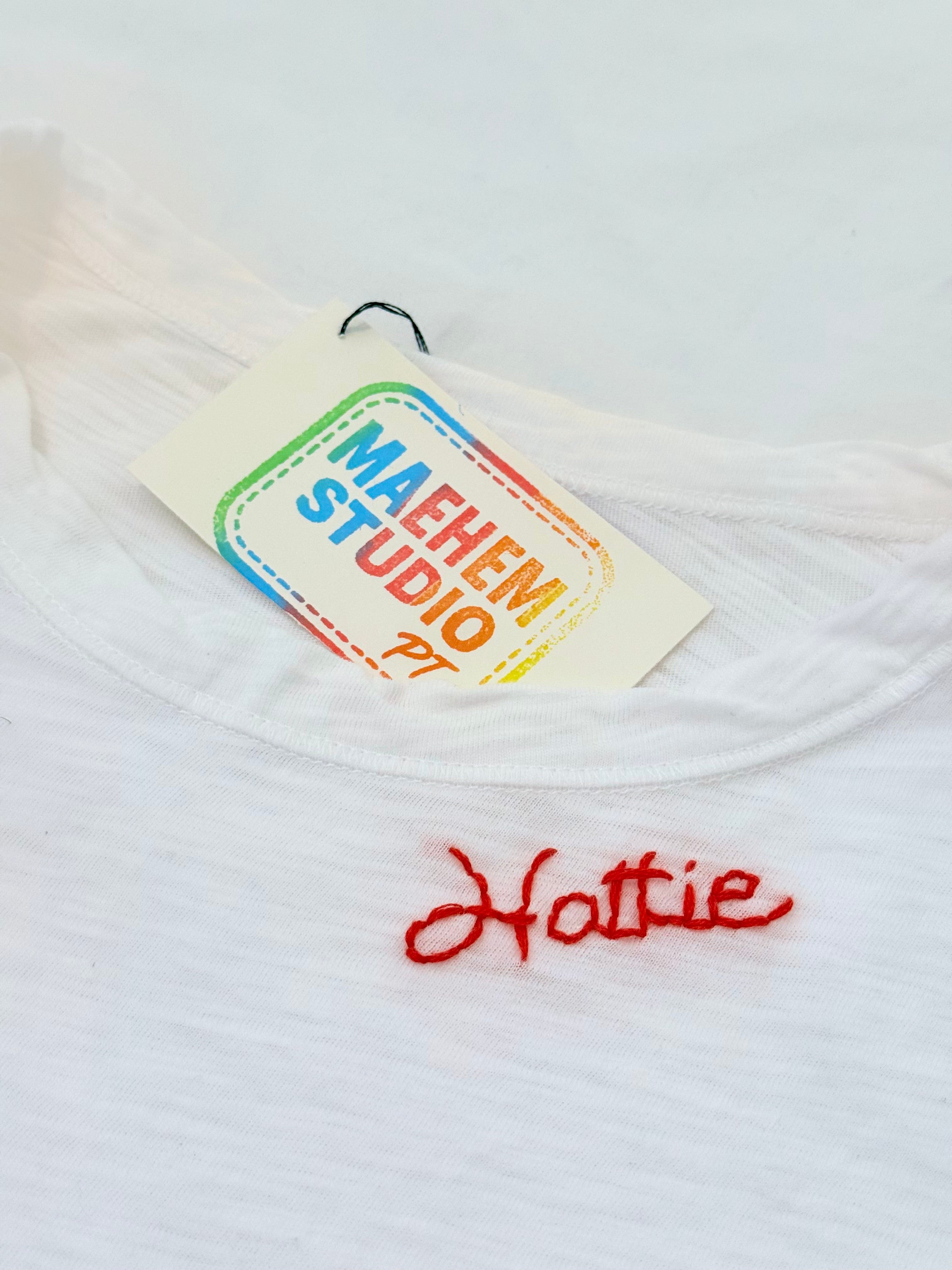 Shipping times vary depending on how much MAEHEM I’ve got going on in the studio; each order usually takes 1–3 weeks depending on product and stitch detail.